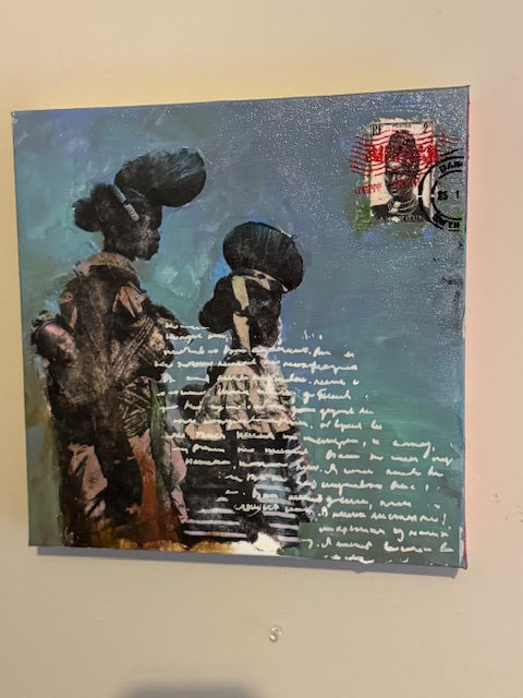 The stamp and postal motif suggest the enduring journey of African voices across time and borders. Language transcends words—it becomes presence, expression, and legacy.